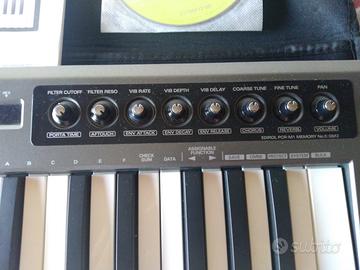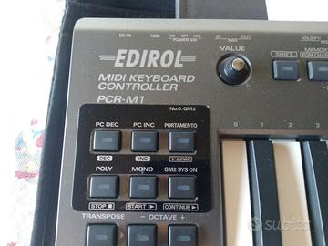 Tastiera usb midi, 25 tasti, Edirol, mod. PCR-M1, vendesi per inutilizzo. Buone condizioni, come da foto, completa di manuale, cd e custodia in neoprene. SEGNALO che uno dei tasti NON funziona (non ricordo quale perche' non e' stata collegata di recente ad un pc o Expander), ma credo che sia facilmente riparabile. Consegna a mano province di Siena e Perugia, oppure spedizione con corriere tracciato. 25 Tasti di Larghezza Standard sensibili alla dinamica S.L.I.M. Keyboard Sottile (28 mm) e Leggera (1.5 kg) 27 Controlli Completamente Assegnabili: 8 Potenziometri, 6 Pulsanti e 2 Porte Pedale Controlli di Pitch e Modulation separati 16 Locazioni di Memoria per Control Map Porte MIDI In/Out Porte Pedale Expression e Sustain - (adattatori da 6.5mm inclusi) 3 Modalità di Alimentazione: USB/Batterie/Alimentatore di Corrente Set di Memoria Scaricabili Software PCR Editor Custodia V-LINK