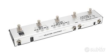 Arrivo al Valeton Dapper Mini, uno stompbox dalle dimensioni contenute che al suo interno dispone di un accordatore a LED con Mute della chitarra, un delay tap tempo, un chorus, un overdrive classico e un distorsore hi-gain. Il Valeton è fabbricato in Cina ed acquistato su internet da un noto distributore tedesco per un costo abbordabilissimo. Il tuner dà la possibilità di accordare qualsiasi nota ma non è cromatico, quindi ottimo per accordatura standard ma anche open, senza però accidenti (nel senso musicale), utile al suo scopo primario con LED molto luminosi. Ottimo per situazioni live. A una prima impressione, il delay somiglia a un digital delay, ma smanettandoci un po' assume connotati più analogici. Il tap tempo fa il suo dovere calibrando la cadenza al ritmo giusto. L’overdrive è ottimo, con la Stratocaster restituisce i timbri tipici del TS9 caricandolo di poco gain, ottimi per il blues/rock. Il distorsore è molto più cattivo, e anche se lo uso meno è comunque utilissimo trovarlo lì a disposizione anche, se a differenza degli altri effetti, l’overdrive switcha a distorsore non a pedale ma con un interruttore. Inoltre c’è una piccola uscita per suonare in cuffia con simulatore di ampli. Utilissima in situazioni casalinghe ma anche di viaggio, restituisce un timbro eccellente.