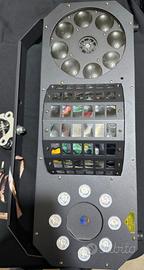 Sorgente luminosa: Gobo: LED 8 x 3W (2 Red, 2 Green, 2 Blue & 2 White); effetto Derby: 2x 10W Quad LED (RGBW); Wash: 8 x 1W LED ( 2 Red, 2 Green, 2 Blue & 2 Amber) + Laser Red & Green