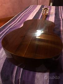 Strumento fatto completamente a mano in palissandro indiano massello per fondo e fasce, tavola armonica in abete massello Val di Fiemme, tastiera in ebano, capotasto e ponticello in osso, lucidatura fatta a mano a Tampone con alcool e gommalacca.