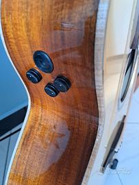 CHITARRA ACUSTICA CUTAWAY ELETTRIFICATA NATURALE Nuova, immacolata, mai utilizzata, ho ancora scatola di cartone. Regalata ad un parente che in realtà ha poi preferito l'elettrica. CHITARRA ACUSTICA CUTAWAY ELETTRIFICATA NATURALE Con lo shape Grand Auditorium, la Alps si caratterizza per il suono profondo e avvolgente, tipiche sfumature di chitarre simil jumbo. Ad arricchire il panorama timbrico di questo strumento il top in Abete Rosso Italiano abbinato a fasce e fondo in Koa laminato a 3 strati. La spalla mancante e l'attacco del body al 14° permettono di raggiungere i tasti più avanzati con agilità, caratteristica molto utile ai chitarristi solisti. La Alps si presenta in colorazione Natural con verniciatura Glossy e monta meccaniche Grover 3L/3R. Dal punto di vista dell'elettronica si distingue in affidabilità e prestazioni grazie al sistema onboard Fishman Flex Plus, un trasduttore piezo "Sonitone" con controlli di Bassi, Alti, Volume e Inversione di fase. Caratteristiche Formato: Grand Auditorium Cutaway Top: Abete rosso massello Italiano Fondo e fasce: Koa laminato, 3 strati Manico: Mogano Tastiera: Palissandro Branko Ponte: Santos Meccaniche: Grover 3L/3R Elettronica: Fishman Flex Plus