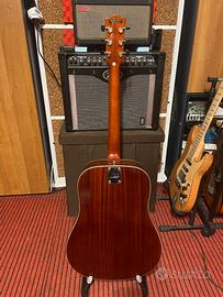 Con il suo corpo Dreadnought, offre un suono potente e bilanciato, ideale per accompagnamenti e performance dal vivo. Il top in Abete assicura brillantezza e definizione, mentre fasce e fondo in Mogano contribuiscono a dare profondità e calore al timbro. Il manico in Mogano con tastiera in South American Roupanà garantisce una suonabilità fluida e confortevole.