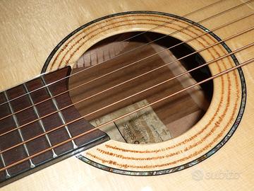 Vendo chitarra acustica "da viaggio" Eko Marco Polo. Condizioni ottime. - Tavola in abete Italiano. - Fondo e fasce in ovangkol. - Tastiera in roupanà. - Rosetta con la parola "viaggiatore" in lingue diverse. - Elettronica Fishman Flex Blend con accordatore integrato. - Finitura lucida. - Custodia imbottita impermeabile originale. NON scambio. NON spedisco.