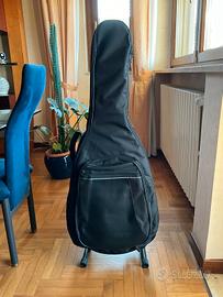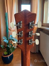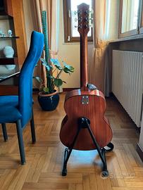 Chitarra acustica vintage in condizioni ottimali. Acquistata a fine anni ‘70/inizio ‘80, è stata usata pochissimo, infatti non ha nessun segno di usura. È dotata di una custodia nuova molto robusta e di una tracolla nuova. Al momento le corde sono montate per suonare la chitarra da mancina. Vendo la chitarra necessariamente assieme agli accessori (il piedistallo nelle foto non è incluso).