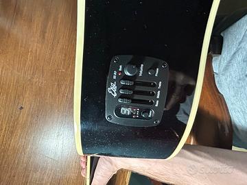 Chitarra acustica elettrificata, ha già una batteria inserita all’interno nel set di impostazioni sonore, come in foto.
