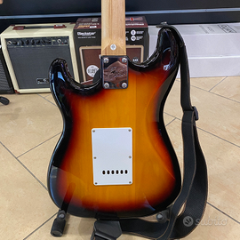 La chitarra è equipaggiata con pickup Eko in configurazione SSS, controlli di volume e due toni, switch blade a 5 vie e ponte con leva del tremolo. Questo strumento ti consente di imparare la chitarra in autonomia, dove, quando e come vuoi, grazie alle luci guida direttamente sulla tastiera della chitarra e l’audio di riferimento. Se sei un maestro potrai assegnare esercizi, scale, arpeggi e brani (tramite app) che l’allievo visualizzerà e seguirà istantaneamente sulla propria tastiera. Un metodo di insegnamento e di apprendimento super interattivo, diretto, coinvolgente, la didattica 2.0. CARATTERISTICHE EKO S-300 Forma Body: Stile Strat Body: Pioppo carbonizzato Finitura: Lucida Manico: Acero Finitura: Satinata Tastiera: Resina Eko WPC (Wood Polymers Composite) Profilo: Eko Low C Capotasto: 42mm Raggio: 14″ Scala: 650mm Tasti: 22 Tipologia tasti: 1.8 x 1.0mm in Argento/Nickel Ponte: Eko Stratoid con tremolo Meccaniche: Eko Die Cast Elettronica: Pickup Eko Standard (3x single-coil) Controlli: Volume, 2x Tono, Switch a 5 vie Custodia: Non inclusa Corde consigliate: Eko 10-46 Regular Set/6 Colore: SUNBURST