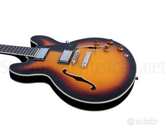SA 350 è una chitarra Hollowbody di Eko Guitars, perfetta per il jazz e il blues grazie al suo suono caldo e morbido. Caratterizzata da una scala di 628mm, un manico in Acero con tastiera in South American Roupanà. Classica configurazione 2 Volume e 2 Tono + switch 3 vie.