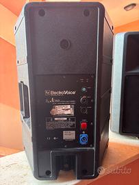Coppia di diffusori Electro-Voice SxA360 in ottime condizioni. Caratteristiche principali: Potenza amplificatore LF RMS: 350 watt Potenza amplificatore HF RMS: 150 watt Risposta in frequenza (-10 dB): 60 – 18000 Hz SPL massimo / 1 m (calcolato); spazio pieno: 129 dB Trasduttore LF: DL12BFH Trasduttore HF: DH2T Copertura (nominale -6 dB) H° 65 ° Copertura (nominale -6 dB) V° 65 ° Ingresso cuffie 1/4 di pollice Tipo di altoparlante: Fullrange, Medio-Alti, Monitor attivi, Bidirezionale Peso netto: 16,6 kg