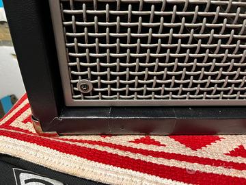 Gli unici “difetti” sono la Maniglia di trasporto un po usurata, un graffio sul pannello dei due output sul retro e una giuntura rivestimento tolex (effettuata di recente) (in basso a dx).