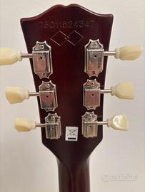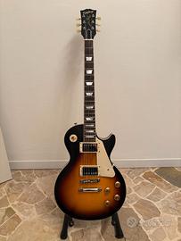 Vendo a malincuore bellissima Epiphone Inspired by Gibson 1959 Les Paul Standard Tobacco Burst perché è entrata a casa una Gibson Les Paul Traditional e bisogna fare un po' di spazio. Differenze con la sorella di casa Gibson minime (potete fare il paragone in caso passiate a provare la chitarra), suono incredibile per la fascia di prezzo grazie ai Custombucker che sono degli humbucker PAF super espressivi di solito montati da Gibson nel Custom Shop che se presi singolarmente costano €400. Acquistata a Milano da LuckyMusic quest'anno, di seguito le specifiche: Body: Mogano Stop: acero con impiallacciatura di acero fiammato AAA Binding: strato singolo, parte superiore e tastiera Manico: Mogano monopezzo Profilo: 1959 Medium-C arrotondato Capotasto: 43mm Tastiera: Alloro Scala: 628,65mm Tasti: 22 Capotasto: Graph Tech Intarsi: trapezi in madreperla Ponte: ABR-1 Cordiera: Gibson Historic Reissue Stop Bar Meccaniche: Epiphone Deluxe con pulsanti Keystone Placcatura: Nichel Pickup al manico: Gibson Custombucker Pickup al ponte: Gibson Custombucker Controlli: 2x Volume, 2 Tono, Potenziometri CTS, condensatori Mallory, cablaggio anni '50 Finitura: Tobacco Burst Accessori: Custodia rigida con esterno marrone, interno rosa e ispirato a Gibson Custom Graphics Ancora in garanzia. Setup dal liutaio. SOLO CONSEGNA A MANO, NO SCAMBI, PREZZO NON TRATTABILE