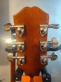 Vendo chitarra semiacustica in oggetto praticamente nuova nessun segno ho fatto le seguenti modifiche capotasto in vero osso perché quello che c'era secondo me non lo era cambiato humbaker sia al ponte che al manico con dei humbaker artigianali suonano da paura ho comunque i suoi originali e ponte ho messo il gothoh nasville più largo perché secondo me tiene meglio intonazione .Non scambio