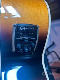 Vendo chitarra acustica Epiphone J-200 Studio EC VS amplificata con pick up. Super jumbo con suono pieno, caldo e potente, perfetta sia per accompagnamento che per live. La chitarra è in ottime condizioni, sempre tenuta in custodia. Presenta solo lievi segni superficiali da appoggio (normali, nulla di strutturale). Mai modificata. Elettronica perfettamente funzionante. Le ho sempre fatto regolare manutenzione e set up dal mio tecnico di fiducia. Numero di serie: 16052315241 INCLUSO NEL PREZZO: - Custodia rigida - Documentazione originale Epiphone - Chiave truss rod originale - Sordina per la cassa - 4 batterie CR2032 - Chiave per chiusura custodia Per ulteriori foto o info non esitare a contattarmi. Prezzo leggermente trattabile. Disponibile per prova. Disponibile per ritiro a mano a Milano (zona De Amici/S.Agostino/Corso Genova) e Lodi. Eventuale spedizione a carico dell'acquirente e da concordare (preferirei evitare di spedire). NO SCAMBI. NO PERMUTE. CARATTERISTICHE TECNICHE (REPERIBILI ONLINE): Forma del corpo: Super Jumbo con cutaway Fondo e fasce: acero Top: abete rosso massello Manico: mogano Tastiera: palissandro Inlays: Graduated Crown madreperlati Binding del top a 6 strati Binding del corpo monostrato Lunghezza della scala: 648 mm (25,5") Larghezza del capotasto: 42,9 mm (1,69") Capotasto: plastica 20 tasti Pick-up: Fishman S-Core Battipenna: effetto tartaruga con grafica J-200 bicolore Ponte: palissandro Meccaniche: Epiphone Deluxe Colore: Vintage Sunburst