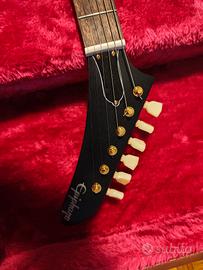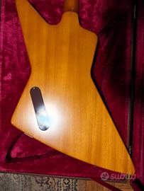 vendo come da titolo FANTASTICA epiphone Explorer korina inspired by gibson Custom shop. Corpo: korina Manico: korina Tastiera: alloro indiano Dot inlays bianchi Profilo del manico: 1958 Explorer Lunghezza della scala: 628 mm Larghezza del capotasto: 43 mm Capotasto GraphTech 22 tasti Pickup: humbucker Gibson Burstbucker 2 (manico) e Gibson Burstbucker 3 (ponte) 2 controlli di volume e 1 controllo master di tono - ciascuno con potenziometro CTS Condensatore Mallory Meccaniche Epiphone Deluxe 6-in-Line Ponte ABR-1 con cordiera stop bar Lock Tone Colore: Aged Natural Include custodia rigida come potete leggere monta pickup originali Gibson usa e suona da favola. acquistata un anno fa (ancora ricevuta d acquisto con garanzia residua) e tenuta in maniera MANIACALE. MAI portata sul palco o alle prove. sempre a casa nella sua custodia. preferibile scambio a mano, sono disposto a fare km per venderla