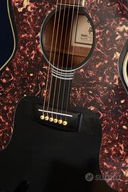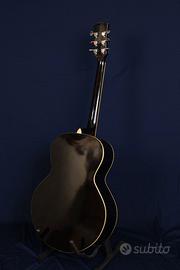Epiphone SQ 180 acustica del 1988. Basata sulla serie Gibson "Star" Don Everly (Everly Brothers), caratterizzata dai segna tasti a forma di stella e’ stata prodotta dal 1986 al 2006. Questo esemplare del 1988 appartiene alla prima serie in edizione limitata dal 1986 al 1990, identificabile dal n° di serie e dalla rara paletta stile vintage Gibson e la scritta “ Epiphone by Gibson “, prodotte solo in Korea. Ha il manico stretto in stile chitarra elettrica. Top: Abete laminato- Fondo e fasce: Acero laminato - Manico: Mogano - Tastiera: Palissandro Indiano, ponte: palissandro, battipenna tartarugato. No botte o rotture, ma normali segni di utilizzo