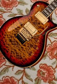 Chitarra elettrica Corpo: mogano Top: acero nuvolato Manico : mogano Tastiera: ebano Profilo del manico: Thin U Lunghezza della scala: 629 mm (24,75") Larghezza del capotasto: 43 mm (1,69") Capotasto bloccacorde R3 22 tasti: Jumbo Pick-up: 2 humbucker Seymour Duncan AlNiCo II Pro Gold (ponte e manico) 2 controlli per il volume e 1 per il tono Selettore a levetta a 3 vie Tremolo: Original Floyd Rose Meccaniche: Sperzel Trim-Lok Hardware: dorato Corde installate: D'Addario NYXL SUP LITE .009 - .042 Colore: Tiger Eye Sunburst Include custodia rigida Dunlop Straplok Made in USA