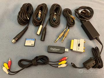 •Dotazione completa di cavi: 1 Microfonico, 2 Prolunghe per cavo microfonico, 2 cavi per uscita audio Stereo, cavo RCA audio L/R e Video, 1 Adattatore SCART/RCA e 1 Adattatore CF Card Reader/USB (tutto visibile in Fotografia).