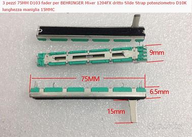 3 fader da 75mm modello D103 per mixer Behringer 1204FX