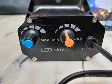 faretto LED stroboscopico RGB (multicolore) praticamente nuovo, ideale per feste in casa, DJ set, compleanni o per creare atmosfera in locali. Caratteristiche principali: • 48 LED luminosi: Molto potente nonostante le dimensioni compatte. • Modalità Sound-Active: Grazie al microfono integrato, le luci lampeggiano a ritmo di musica. • Colori personalizzabili: Puoi scegliere un colore fisso o sequenze automatiche tramite telecomando. • Controllo totale: Doppia manopola posteriore per regolare velocità del lampo e sensibilità del microfono. • Telecomando incluso: Per gestire tutto a distanza senza doversi avvicinare al faretto. Condizioni: Perfettamente funzionante, incluso di scatola originale e accessori.