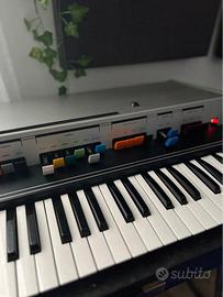 Questo organo combo italiano degli anni '70 è dotato di una tastiera di 61 note e una sezione di accompagnamento con 14 ritmi automatici.