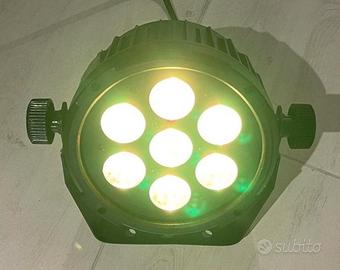 Un parcan ad alta potenza in alloggiamento ABS con 7 LED da 6W RGBW (4 in 1). Progettato per essere piatto in modo da poter essere inserito nelle truss e dotato di ingresso / uscita IEC per collegare in cascata più unità.