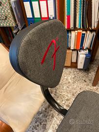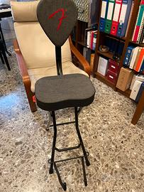 Vendo per inutilizzo sgabello con supporto per chitarra prodotto da Fender. Design pieghevole, schienale rimovibile, tessuto grigio tweed, piedini antiscivolo. Come nuovo. Comodo sia in casa che su palco o sala prove.