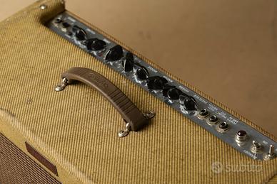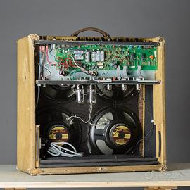 Amplificatore Fender Blues Deville Reissue 4x10 valvole 6L6 .Ottimo suono pulito e brillante , bassi profondi. Pedaliera per la selezione del canale lead e reverbero. Adatto per generi funky,blues,pop/rock. l'ho acquistato nel 1993 sono unico proprietario ha suonato molto ma sempre controllato e rivalvolato periodicamente lo vendo perché sono invecchiato e per me pesa troppo 🙂. Se interessati e risiedete in zona potete venire a vederlo e provarlo.