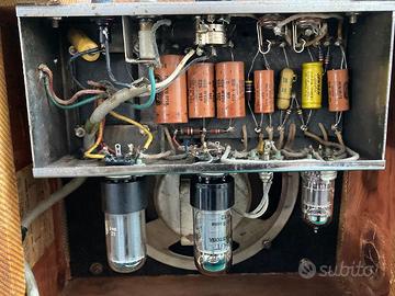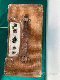 Amplificatore Fender Champ Model 5F1 Narrow Panel 5W anno 1958 s.n. 08xxx completamente originale in ogni suo componente incluso cordone e spina voltaggio USA 110 V. (fornito con trasformatore esterno per l'impiego a 220 V) recentemente controllato in tutto da Vincenzo Tabacco, egregiamente funzionante. Altoparlante originale ricondizionato e testato da laboratorio Bernardini.