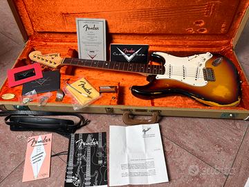Vendo Fender Custom Shop 1969 Stratocaster Relic, seriale R11924, con Certificate of Authenticity datato 30/08/2002. Strumento completamente originale, completo di custodia tweed G&G, COA, Custom Care, leva tremolo, copriponte, chiavi custodia, panno Fender e corredo visibile in foto. Finitura 3-tone sunburst relic, tastiera in palissandro, configurazione SSS. Strumento molto ben conservato come esemplare relic di fabbrica, pulito e completo. Disponibili foto dettagliate di corpo, manico, paletta, neck plate, custodia e accessori. Consegna a mano con possibilità di prova in zona Pisa / Marina di Pisa. Non scambio.