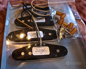 Non mi piaceva il suono della mia stratocaster, quindi li comprai nuovi, ce li montai sopra e dopo un mese li smontai perché capii ciò che non mi piaceva era la chitarra in sé e non i pickup. La strat la vendetti e loro li riposi nella loro confenzione originali dove sono rimasti un annetto in attesa di un nuovo progetto, adesso piuttosto che tenerli fermi preferisco che li abbia qualcuno che li suona perchè sono fatti per quello. Le condizioni sono eccellenti, funziona tutto, i tre single coil Made in USA sono accompagnati dalle loro viti e gommini originali. Prezzo non trattabile.