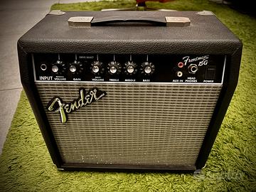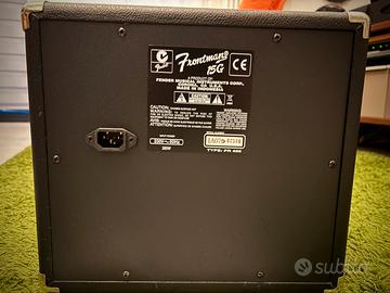 Come nuovo, perfettamente funzionante, con scatola originale e istruzioni. Il Fender Frontman 15G è un amplificatore combo a transistor da 15 Watt, ideale per studio e pratica. Offre due canali (Normal/Drive), un cono da 8 pollici Fender Special Design, EQ a 3 bande, ingresso AUX per basi musicali e uscita cuffie, il tutto nel classico stile Fender Blackface. Ecco le specifiche: Tipo: Stato Solido (Solid State). Potenza: 15 Watt su 8 Ohm. Altoparlante: 1 x 8" Fender® Special Design Speaker. Canali: 2 Canali selezionabili: Normal (Clean) e Drive (Distorto). Controlli: Volume Normal, Gain, Drive Select Switch, Volume Drive, Treble, Mid, Bass. Ingressi/Uscite: 1 Jack Input (chitarra), 1 Jack 3.5mm Cuffie, 1 Ingresso Aux (per CD/Tape/Drum Machine). Struttura: Retro chiuso (Closed Back) per una migliore risposta sulle basse frequenze. Estetica: Vinile nero "Blackface", griglia in tessuto argento. Dimensioni: 31.8 cm (A) x 33.65 cm (L) x 18.41 cm (P). Peso: 6.80 kg. Visto piaciuto.