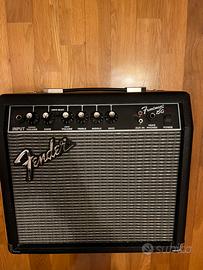 Vendo Fender Frontman 15 G Amplificatore combo da 15 watt a transistor con cono da 8 pollici integrato; 2 canali: normal (clean) e drive selezionabili con un bottone; Canale normal: volume, Canale Drive: volume e gain; Equalizzazione a 3 bande; Ingresso stereo per basi esterne; Uscita cuffie. Condizioni ottime, sempre tenuto con cura e usato poco a bassi volumi. Presenta lievi graffi dovuti all’uso sul retro. Questo amplificatore è perfetto da accopiare a una chitarra entry level per imparare a suonare, con i suoi due canali ha una vasta gamma sonora ed è perfetto per tutti i generi.