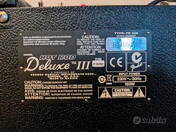 Vendo amplificatore valvolare Fender Hot Rod Deluxe III da 40 Watt. L'apparecchio è in condizioni estetiche da vetrina: è stato utilizzato pochissimo, esclusivamente in casa e conservato con cura sotto la sua cover protettiva. Il rivestimento esterno e la griglia frontale sono immacolati, senza alcun graffio o segno di usura. Sono inclusi il footswitch originale e la cover Fender. Per massima trasparenza l'amplificatore è rimasto fermo e inutilizzato per circa 10 anni, salvo qualche eccezione specialmente durante il lockdown del 2020. Funziona perfettamente, è stato acceso ed usato negli ultimi giorni ma non è stato "stressato" troppo.