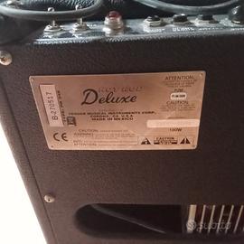 Vendo amplificatore valvolare Fender Hot Rod Deluxe da 40 Watt, versione Serie II Made in Mexico. Il modello è quello classico con la placca comandi cromata a specchio e interruttori in metallo, esteticamente superiore alle serie successive con pannello nero. Potenza: 40W valvolari (molto potente, ideale per live e sala prove). Canali: 3 canali selezionabili (Clean, Drive e More Drive). Riverbero: Riverbero a molla originale Fender, profondo e cristallino. Condizioni:Ottimo stato estetico e funzionale. Pannello comandi lucido e scritte perfettamente leggibili. Accessori inclusi nel prezzo: Footswitch originalea due tasti (per cambio canali e gain). Cover protettiva originale Fender in nylon nera