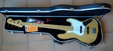Vendo bellissimo Fender Jazz AM st del '97 con custodia rigida tutto originale,unico proprietario, finitura natural/acero ,doppio battipenna normali piccoli segni d'utilizzo sul basso e sulla custodia, Non spedisco.