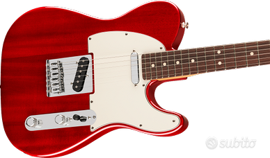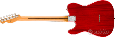 Body: Ontano Finitura: Poliestere lucido Tastiera: Acero Intarsi: Dot neri Intarsi laterali: Neri Capotasto: Osso sintetico Larghezza: 1.650" (42mm) Manico: Acero Finitura: Uretano Satinato sul retro, Uretano lucido frontale Costruzione: 4-Viti Standard Profilo: Modern "C" Raggio: Modern 9.5" (241mm) Tasti: 22 Medium Jumbo Scala: 25.5" (648mm) Pickup al manico: Player Alnico 5 Tele Single-Coil Controlli: Volume, Tono, Selettore pickup 3-Vie Manopole: Zigrinate Flat-Top Battipenna: 3-Strati bIANCO Chiave per Truss Rod: 3/16" Hex (Allen) Pickup al ponte: Serie Player Alnico 5 Tele Single-Coil Hardware: Nickel/Cromo Ponte: 6-Sellette String-Through-Body in acciaio Meccaniche: Fender Classic Gear Corde: Fender USA 250L Nickel Plated Steel (.009-.042 Gauges) Truss Rod: Azione singola, regolazione dalla paletta Dado del Truss Rod: 3/16" esagonale Colore: Transparent Cherry Custodia consigliata: Classic Series Stratocaster/Telecaster Wood Hardshell Case Made in Mexico