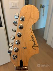 Causa esubero strumentazione vendo chitarra elettrica FENDER Player Jaguar RW 3-Color Sunburst. Lo strumento presenta alcuni piccolissimi segni sulla vernice legati al normale utilizzo ed un segno un po' più grande (solo segno, no ammaccatura) visibile in foto che non compromettono in nessun modo il suono e la struttura della chitarra. La barra tremolo è compresa anche se non visibile in foto. Lo strumento è disponibile per test e visione presso la mia abitazione. CARATTERISTICHE Body: Ontano Manico: Acero Profilo: Modern "C" Scala: 24" (610mm) Tastiera: Pau Ferro Raggio: 9.5" (241mm) Tasti: 22, Medium Jumbo Capotasto: Osso sintetico Larghezza: 1.650" (42mm) Pickup al ponte: Player Series Alnico 3 Jaguar Humbucking Pickup al manico: Player Series Alnico 2 Jaguar Single-Coil Controlli: Volume, Tono, Selettore pickup 3-Posizioni Ponte: 6 Selle stile Vintage regolabile con tremolo "Floating" Meccaniche: Standard chiuse Battipenna: 3 Strati nero / bianco / nero Made in Mexico