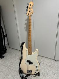 Vendo, come da titolo, fender precision standard messicano per inutilizzo. Effettuato cambio del ponte originale con un Hi-Mass della fender (presente comunque quello originale) e del battipenna originale bianco (anche questo presente) con uno dorato della Musiclily, visibile in foto. Monta corde lisce della LaBella. Si vende insieme, oltre al ponte e al battipenna originali, anche ulteriore battipenna tartarugato originale fender.