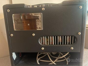Vendo Fender Pro Junior IV LTD, amplificatore valvolare da 15W, in ottime condizioni estetiche e perfettamente funzionante. Utilizzato principalmente in casa e per soli 4 live (sempre in ambienti smoke free). Vendo per cambio sonorità. Il suono è molto caldo, diretto e dinamico. Il clean è brillante ma mai sterile, con una bella rotondità sulle basse e una presenza definita sulle alte frequenze. Aumentando il volume entra in una saturazione naturale, con un crunch cremoso e ricco di armoniche, ideale per suoni blues e rock vintage. La risposta è estremamente sensibile al tocco e al volume della chitarra, volume che nonostante le dimensioni può raggiungere anche livelli molto alti. Caratteristiche 15 Watt valvolari Valvole: 2x EL84 + 2x 12AX7 Speaker: 10” Jensen P10R Alnico Controlli: Volume e Tone Peso: 9,5Kg (circa) Preferibile consegna a mano, ma disponibile a spedizione (a carico dell’acquirente). Per eventuali domande o chiarimemti non esitare a contattarmi ;)