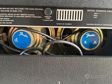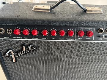 Ampli 20 watt 2 canali. Coni Fender da 8”, stereo chorus, send/return, uscita cuffia e uscita footswitch. Adatto anche per chitarre acustiche. Revisionato e funzionante. Non spedisco a causa del peso e per sicurezza dell’acquirente. Consegna a mani a Bologna e zone limitrofe.