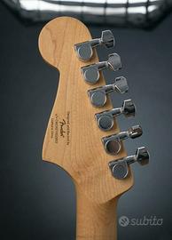 Vendo FENDER Squier Contemporary Jaguar HH ST LRL Shorel in colorazione GOLD. La chitarra si presenta in perfette condizioni sia estetiche (come visibile nelle foto) sia elettroniche/funzionali. E' stata eseguita una smussatura degli spigoli dei tasti (classico difetto delle squier) da liutaio professionista per cui la suonabilità è ottimale. Ho comprato la chitarra per questioni puramente esteriche (è effettivamente bellissima) e l'ho usata (di rado perchè ho altre chitarre) sempre e solo in casa. L'ho usata più che altro come elemento d'arredo considerando la sua componente estitica molto curata, elegante e d'impatto. Presenta la sua confezione completa originale (scatola squier in cartone con brugola e copertura interna della chitarra). Tecnicamente presenta una coppia di pickup humbucker Squier SQR Atomic con coil-tap e commutazione serie/parallelo sulla piastra di controllo superiore. C'è la possibilità di creare una grande varietà di suoni che passano dal timbro pieni degli humbucker ad uno più secco e diretto simil single coil. Il manico è in acero tostato (il mio esemplare è particolarmente bello a livello di venature) e il tallone di attacco del manico è sagomato per poter accedere ai tasti alti. La scala è una 24" comodissima per chiunque non abbia le mani enormi, la tastiera presenta radius 12" e 22 tasti jumbo. Per riferimento al suono , trovate un esempio su YOUTUBE digitando esattamente il titolo dell'annuncio. Le condizioni della chitarra sono praticamente pari al nuovo. Possibilità di visionarla e provarla personalmente a casa mia. Preferirei non spedire per ridurre le incognite di gestione dei corrieri. Se si dovesse optare per la spedizione, non potrò prendermi la reponsabilità di eventuali problematiche. Non mi è possibile spedire con TuttoSubito perchè le dimensioni della confezione sono superiori rispetto a quanto concesso. Per questo preferisco la consegna a mano e non affidarmi a corrieri terzi.