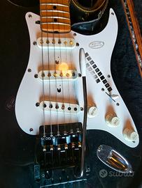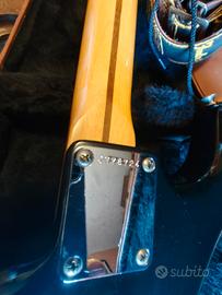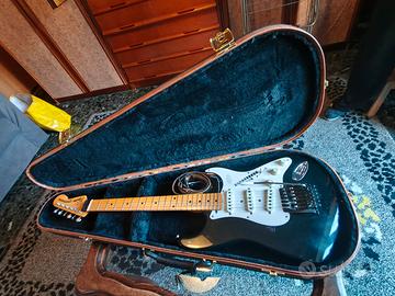 Si tratta di una Squier Stratocaster "JV Series" (Japanese Vintage) numero di serie: JV76724 prodotta tra il 1982 e il 1984 dalla FujiGen Gakki in Giappone. È il modello con il logo Squier grande, tipico delle serie destinate all'esportazione verso l'Europa. Ecco i dettagli finali che ne determinano il valore: Ponte Kahler e Bloccacorde: La presenza del bloccacorde sopra il capotasto conferma che il sistema Kahler è parte integrante del design della chitarra, rendendola un modello "Contemporary" molto ricercato. Qualità JV: Queste chitarre sono celebri perché costruite con standard qualitativi che all'epoca misero in crisi la produzione americana. Stato di conservazione: Dalle foto sembra tenuta molto bene, con il legno del manico (acero) che ha preso una bella tonalità ambrata tipica del vintage reale. Valutazione Finale di Mercato Considerando lo strumento completo, la serie JV, il sistema Kahler originale e la custodia Musicart: Valore stimato 2.100 €.