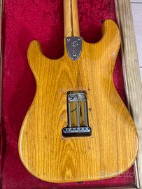 Fender Stratocaster USA 1979 – Natural Ash – 100% Originale Splendido esemplare del marzo 1979 (datazione certificata da timbro interno al corpo, seriale S913850 e sticker originale sotto il battipenna). Una chitarra con grande carattere, perfetta per chi cerca il vero suono e look dell'era Late-CBS. Specifiche Tecniche: • Body: Frassino (Ash) con venature a vista molto belle. • Manico: Acero con tastiera in palissandro (Rosewood). • Elettronica: Totalmente originale, cablaggio di fabbrica, pickup grey/black bottom e potenziometri CTS d'epoca. • Hardware: Ponte tremolo originale funzionante . Stato dello Strumento: • Originalità: 100% parti originali. Inclusa leva tremolo e il raro copri-ponte (ash tray) originale. • Finitura: Il corpo ha ricevuto in passato un leggero strato protettivo trasparente che ne preserva il legno. • Tasti: Originali e vissuti. Lo strumento è suonabile ma, data l'usura del tempo, si consiglia un intervento di ritastatura (refret) per riportarla al massimo delle prestazioni. Prezzo e Condizioni: Prezzo: € 2.700 (leggermente trattabili per compensare il futuro refret). Strumento risonante e di sicura rivalutazione. Disponibile per qualsiasi prova. 📍 Ritiro a mano presso Liutaio Mastrozippa