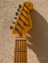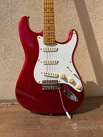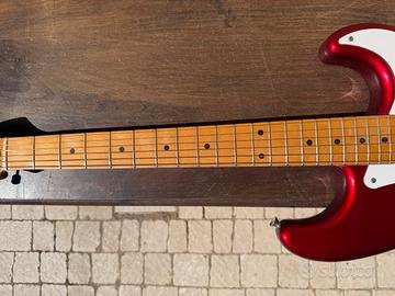 Splendida Stratocaster made in Japan, costruita nella fabbrica di FujiGen nel 1990, con finitura Candy Apple Red. Manico in acero da 21 tasti, raggio della tastiera 7,25", vintage pickup e ponte Fender con sellette stampate. Ha trentasei anni portati benissimo, qualche graffio e ammaccatura c'è, posso dire che ha uno Journeyman Relic reale che le da ancora più fascino. Il manico è in ottimo stato, monta corde nuove. Solo sei foto non possono dare un'idea del tutto esaustiva ma a chi fosse interessato possono inviarne altre.