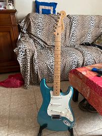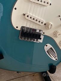 Fender stratocaster ocean torquoise messicana con modifiche al ponte e lieve danneggiamento sul fondo dela chitarra