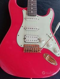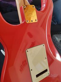 Il body è stato riverniciato alla Nitro in colorazione originale Fender Fiesta Red con strati sottili da Agostin Custom Guitar (non uno qualsiasi) in origine Olympic white