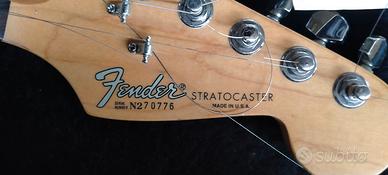 American Stratocaster anni 90 nera, vendo completa di custodia originale. ci sono anche tutti i documenti di quando l'ho acquistata. è uno strumento superiore con un ottima suonabilita'. il manico è di acero marezzato . vendo perché non la suono più da tempo e mi dispiace lasciarla così. il prezzo è indicativo, c'è margine di contrattazione.