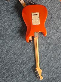 vendo questa strado del 2005, appartenente alla vecchia e oramai introvabile serie di Vere strato. in conformazione HSS con split nel tasto del volume, tastiera in acero con segnatasti madreperla, colore Orange tangerine.