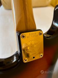 Splendida Fender Stratocaster del 1996, edizuine celebrativa del 50simo anniversario. Costruita in sole 2500 copie. Targa celebrativa mostrata in foto. Condizioni PERFETTE. Nessun segno di usura. Completa di custodia originale Fender.