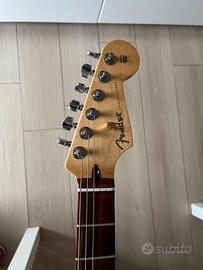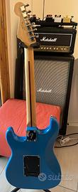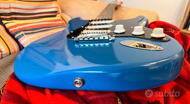 Vendo a malincuore questa Fender Stratocaster, uno strumento fantastico da suonare con legni e hardware originali. La chitarra è stata riverniciata in blu e presenta qualche segno di usura che ne testimonia l'utilizzo. A livello di elettronica monta pickup serie Standard Messico ceramici con circuito treble bleed e una placca sotto il pickup al ponte per ottenere un punch deciso in stile Telecaster. Inclusa nel prezzo la custodia rigida Fender Deluxe delle serie americane. Preferisco lo scambio a mano per farla provare, ma posso valutare la spedizione previo accordo. Valuto scambi esclusivamente di persona con LTD EC1000/TE1000, Fender Telecaster con tastiera in palissandro, oppure Epiphone nelle varianti Prophecy Red Tiger, Custom Red Widow o Black Beauty.