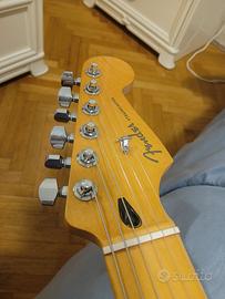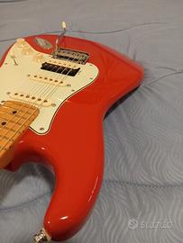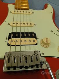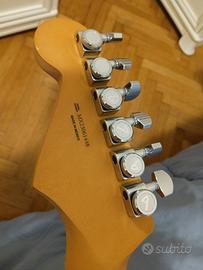 vendo la suddetta chitarra in quanto è come nuova senza neppure un graffio. la sola cosa che è stata fatta consiste nella sostituzione del pickup al ponte. ne ho messo uno color zebra con più bassi rispetto all'originale Fender in modo che fosse meno tagliente una volta splittato. meccaniche autobloccanti e ponte su due perni per una tenuta ottima. corde Daddario 10/46 e accordatura in Ab. custodia imbottita fender in dotazione.
